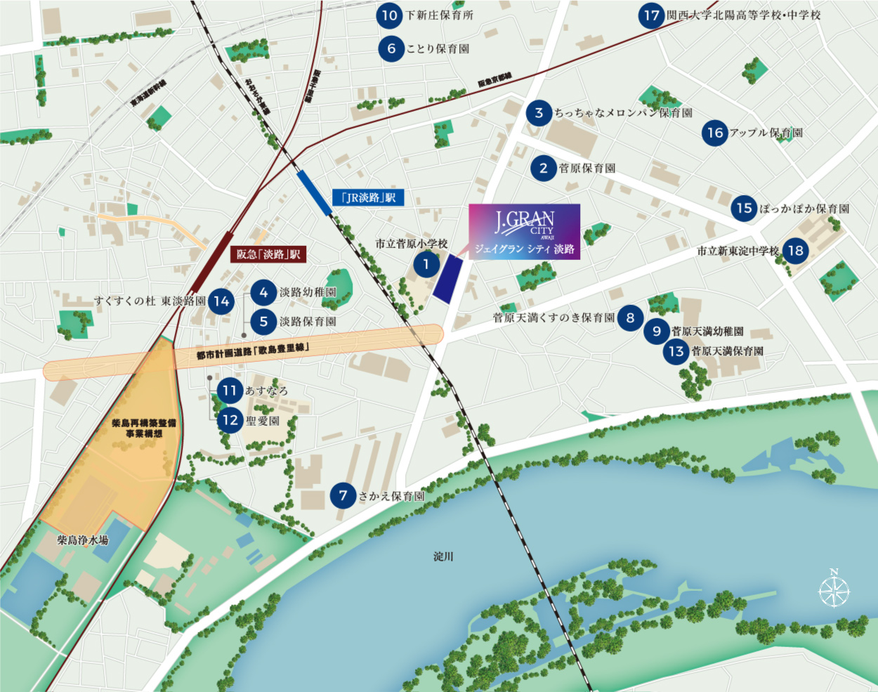 (徒歩10分/サブエントランスより約760m) - 菅原天満保育園