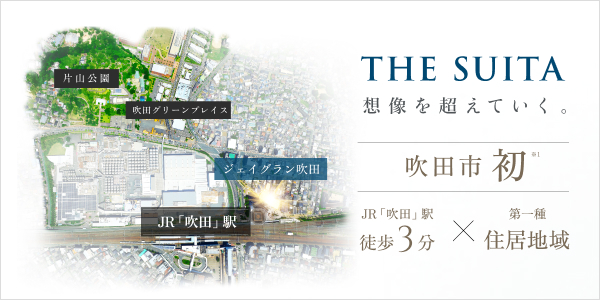 JR「吹田」駅徒歩3分、JR「大阪」駅まで3駅10分。生活利便と豊かな自然の融合により、想像を超える暮らし始まる。※1:1995年以降、JR「吹田」駅徒歩3分以内で第一種住居地域に供給されるマンションは吹田市初となります。(2025年8月MRC調べ)