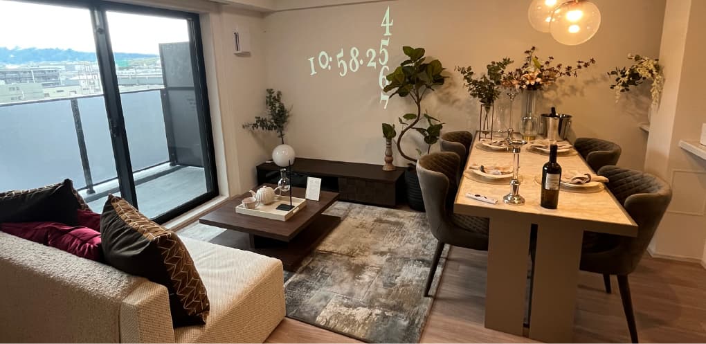 ※室内写真はモデルルーム家具付き分譲住戸706号室(2025年10月撮影)したものでオプション仕様等を含みます。また照明器具・家具調度品等は販売価格に含まれておりません。フローリング・建具等の色目は、画面の都合上、多少異なる場合がございます。