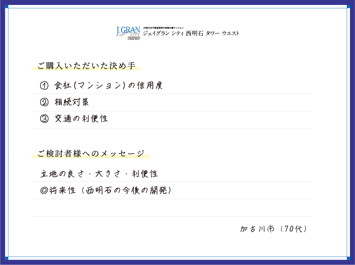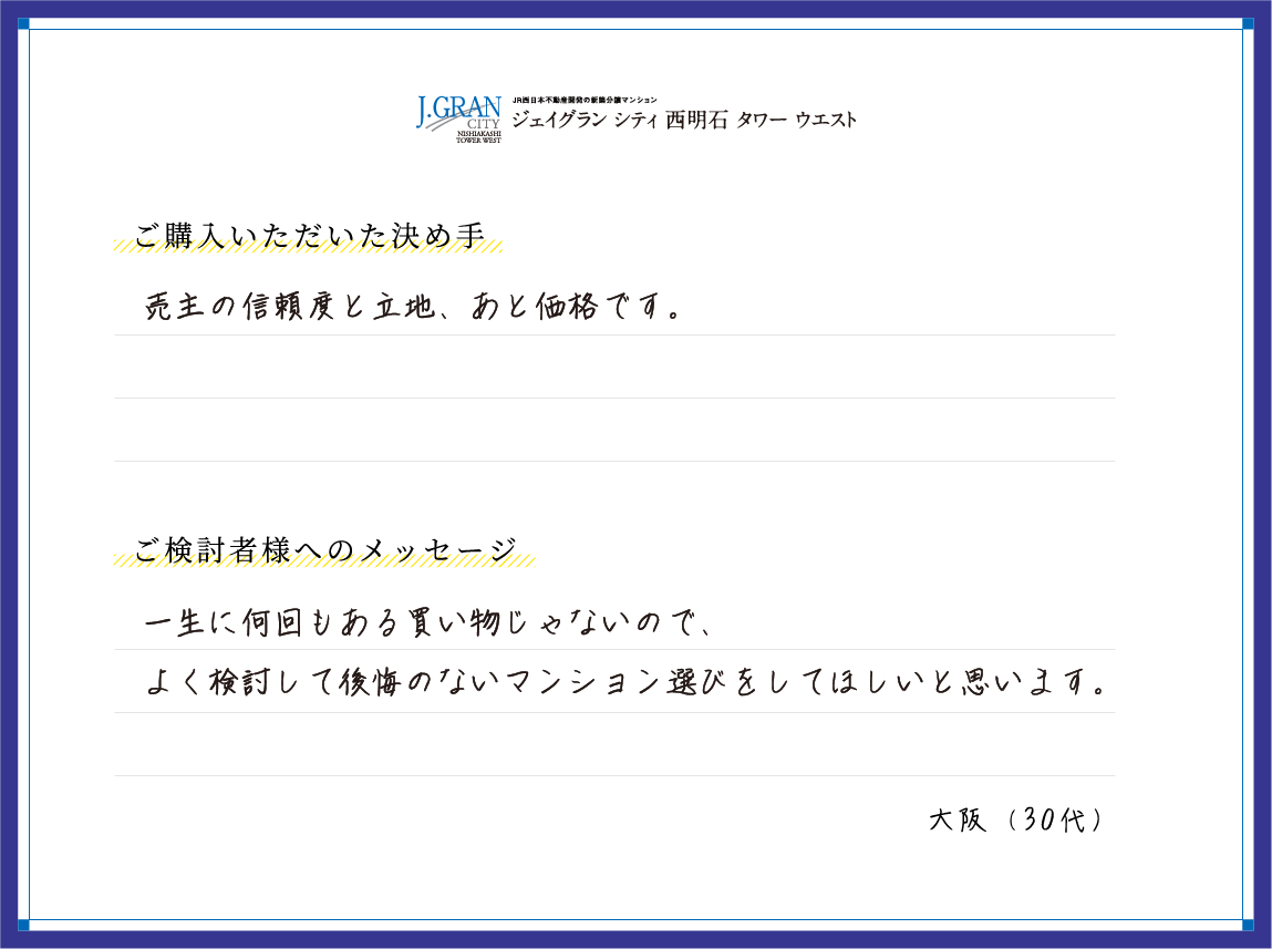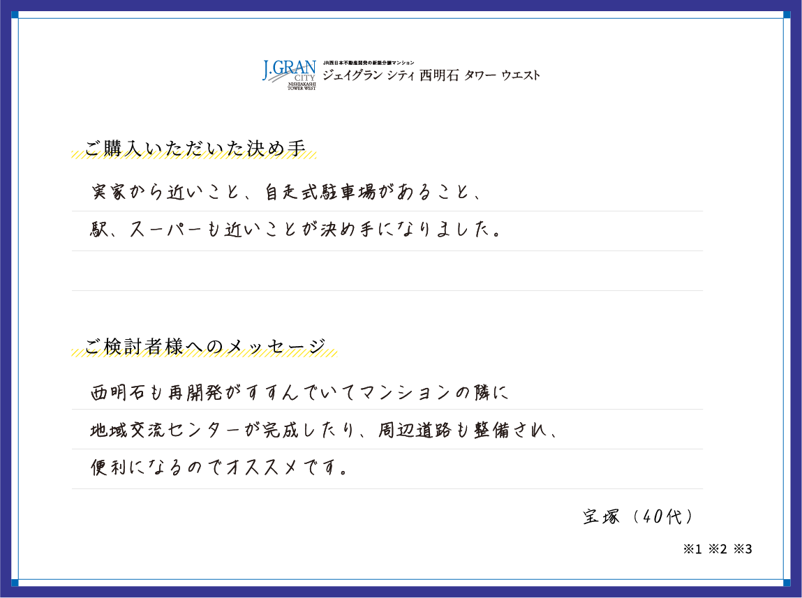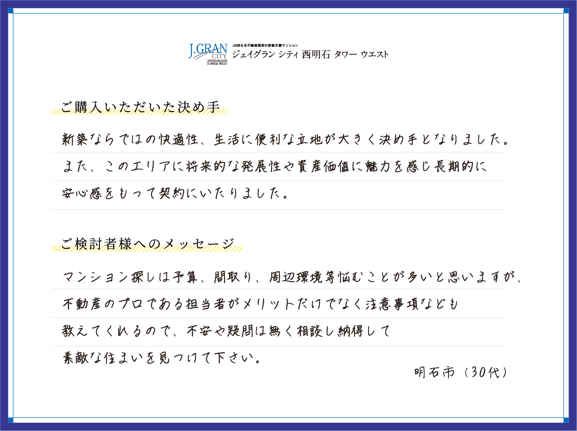 新しい暮らしをスタートされた皆さまから届いた、「リアルな満足の声」を一部ご紹介します。